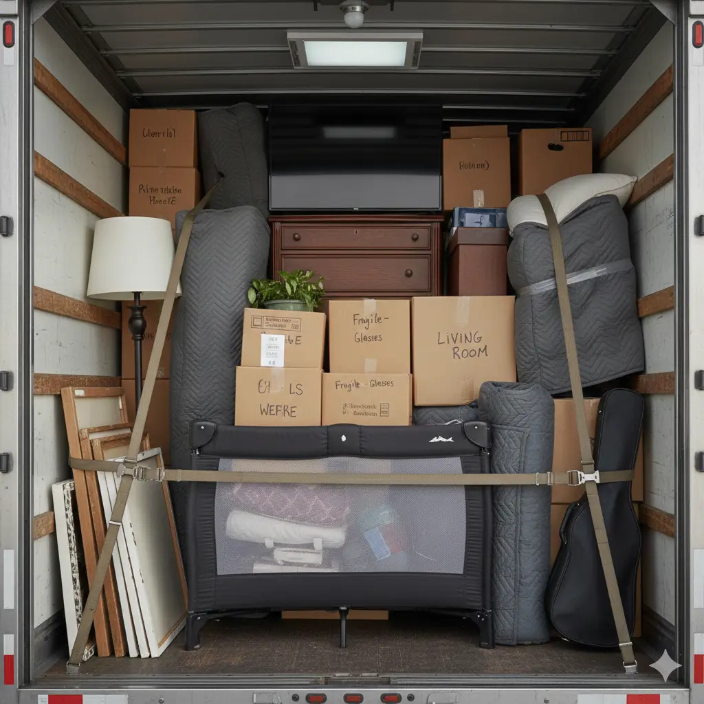 A move adds up quickly — tight hallways, stairs, corners, and heavy items being shifted multiple times. That’s why we focus on safe handling and proper securing throughout the job.